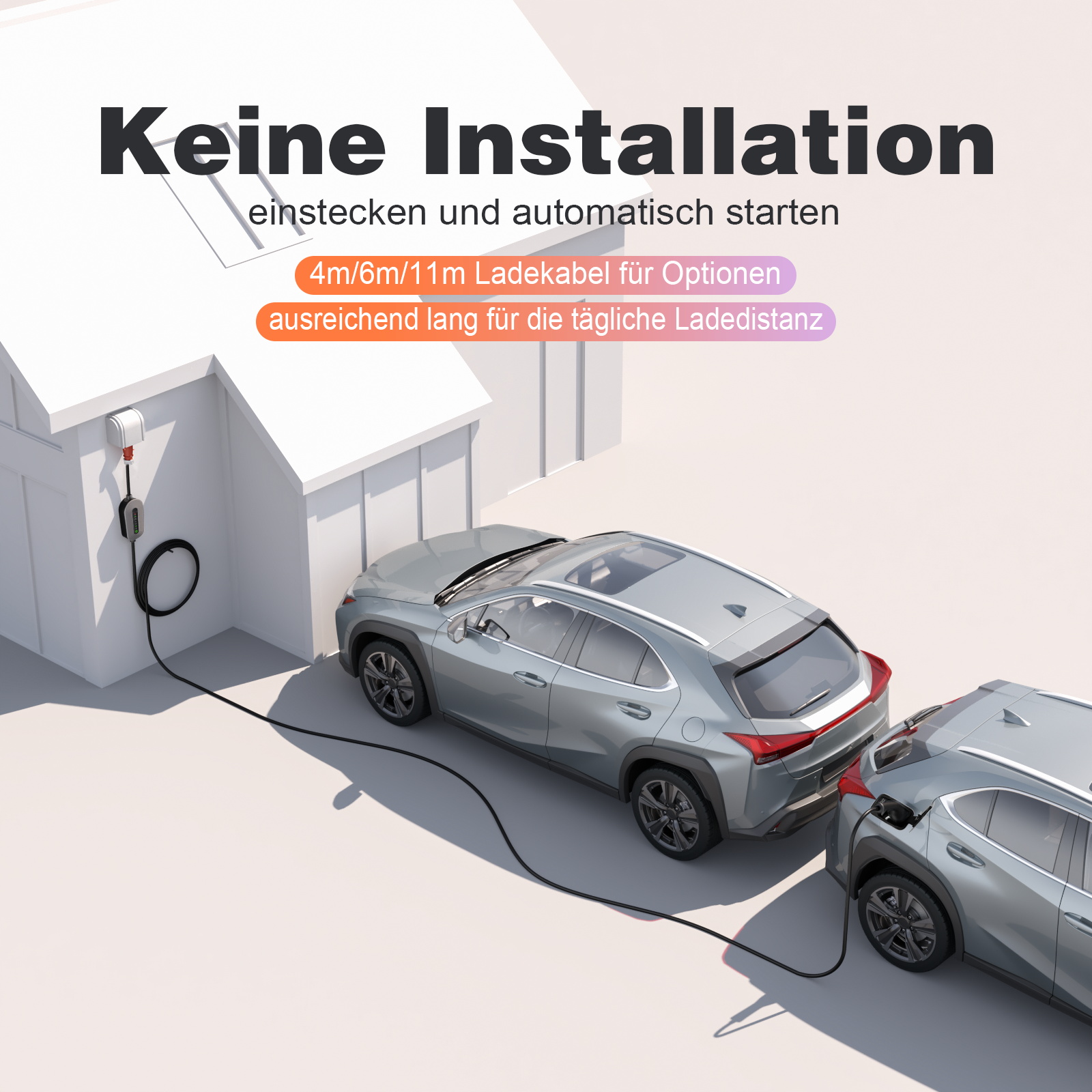 • Unterstützt alle gängigen E-Autos mit Typ-2-Anschluss