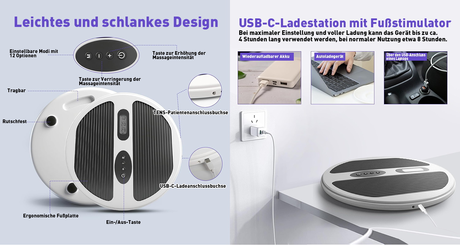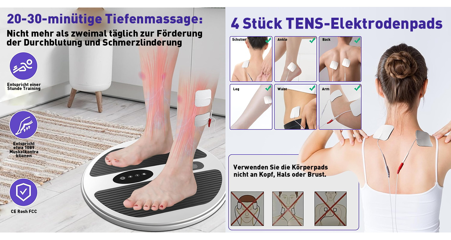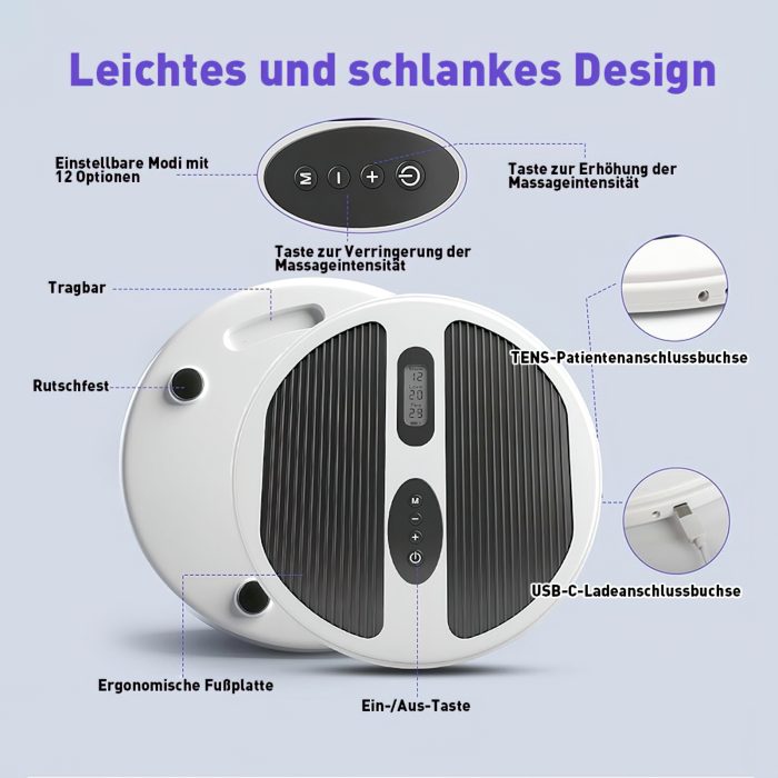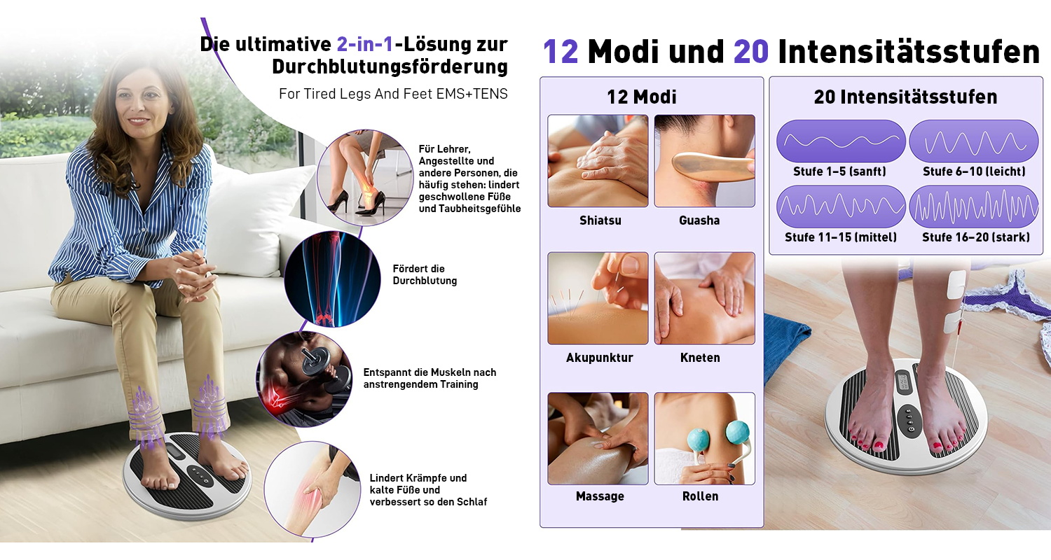 Verwandeln Sie Ihre tägliche Routine mit diesem vielseitigen EMS & TENS Fußmassagegerät und erleben Sie eine beruhigende, entspannende Auszeit wann immer Sie es brauchen!