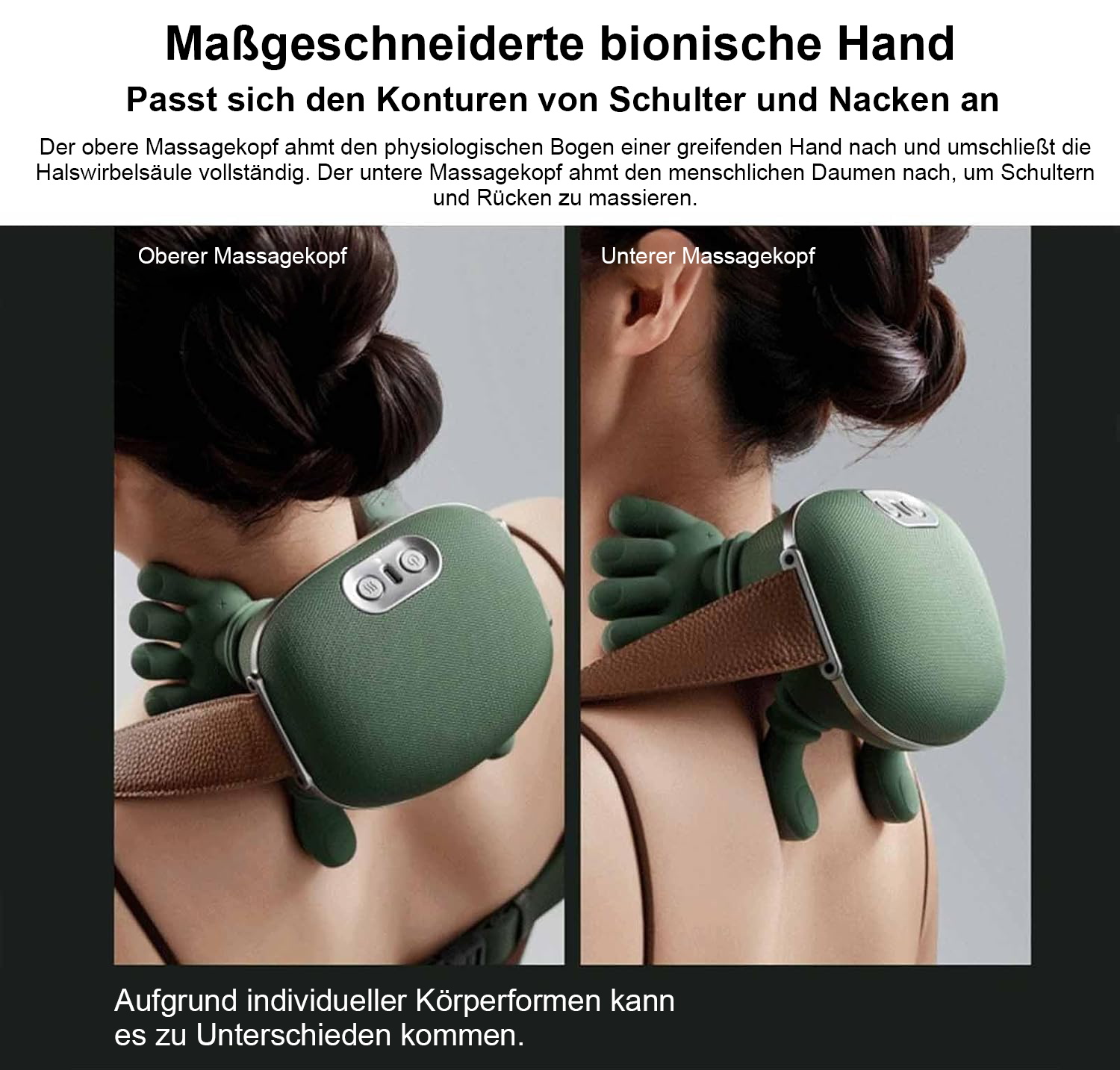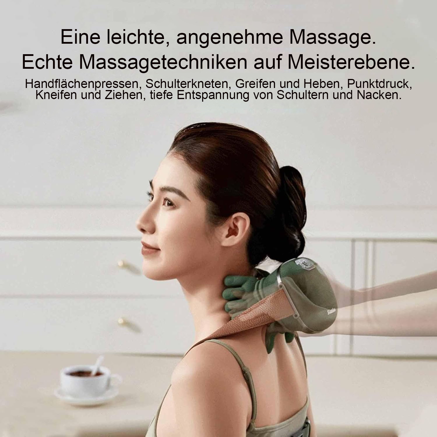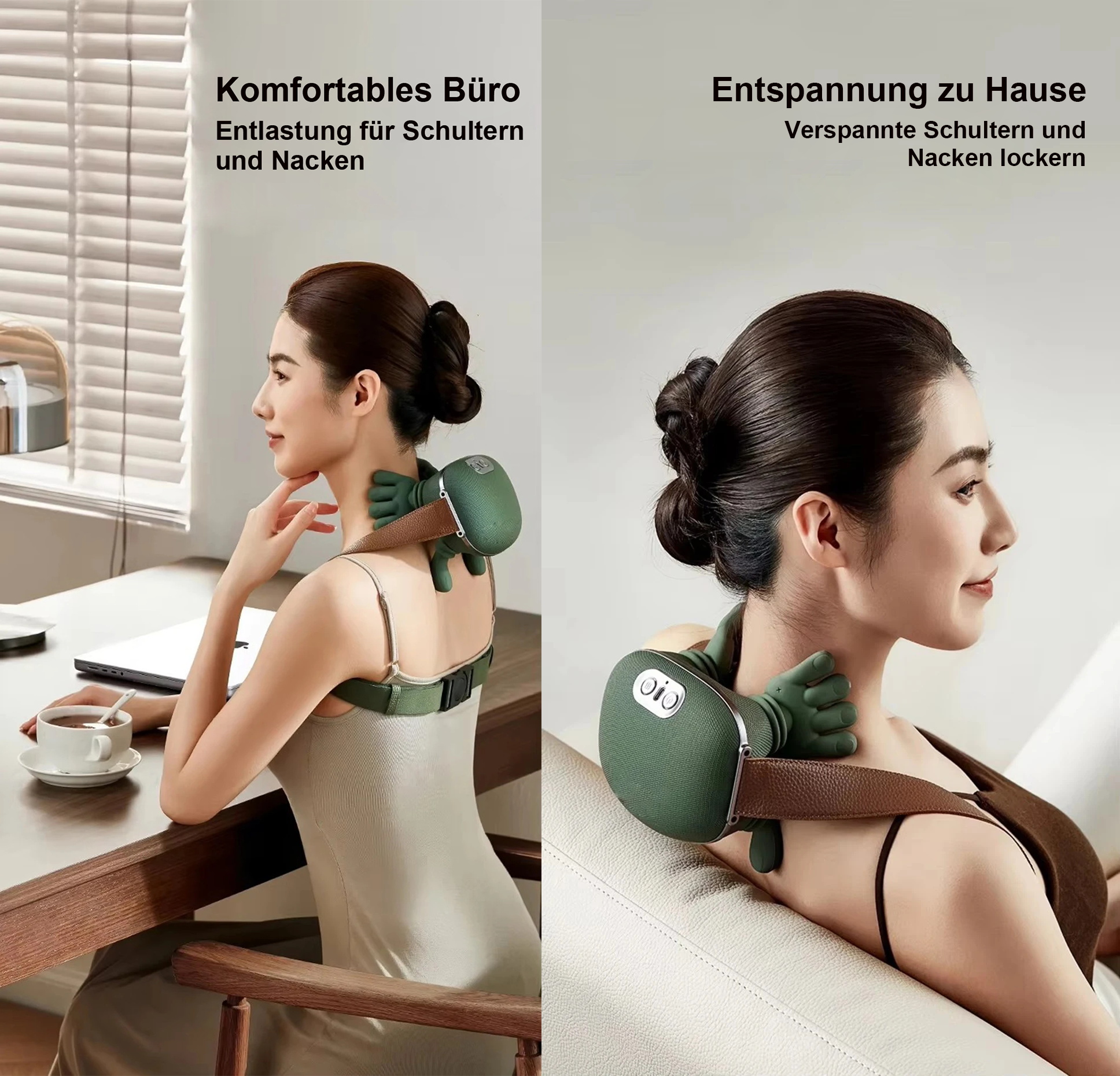 Das Nacken- und Schultermassagekissen bietet zwei Einsatzmöglichkeiten: Handheld oder mit Trägern, um unterschiedlichen Nutzungsszenarien gerecht zu werden. Es ist leicht und kompakt, ideal für den Einsatz zu Hause oder im Büro.