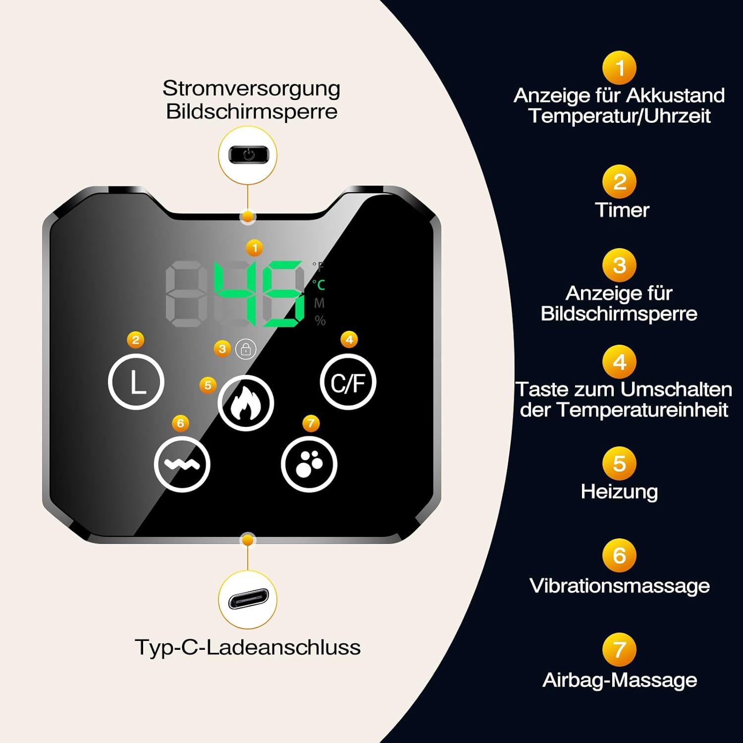 Luftdruckstufen: 3 Stufen (Aus – Entspannende Massage – Schützende Massage – Stärkende Massage)
