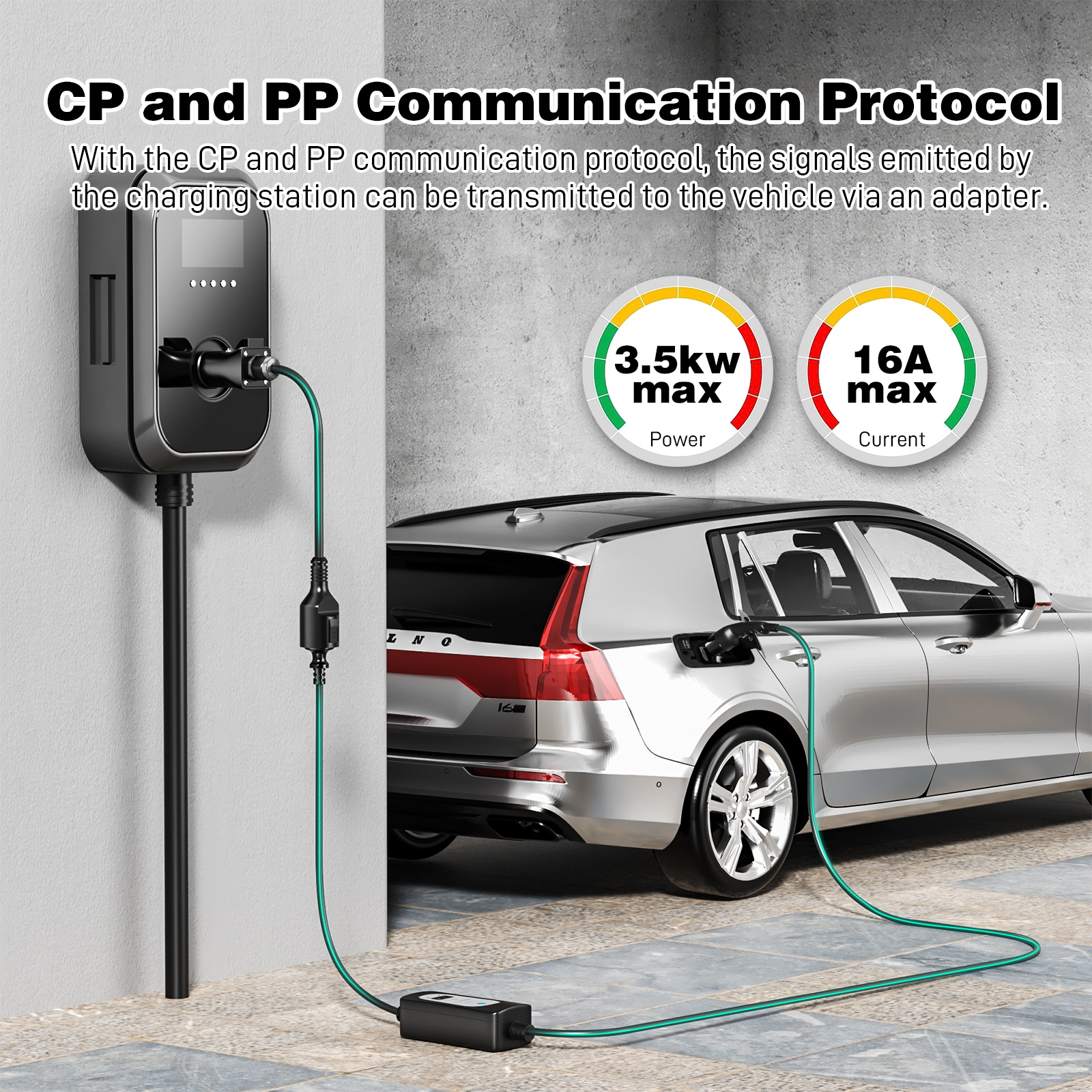Der Adapter ist mit den CP- (Control Pilot) und PP- (Proximity Pilot) Protokollen ausgestattet und überträgt zuverlässig alle Signale der Ladestation an Ihr Fahrzeug. Dadurch wird eine nahtlose Verbindung und eine intelligente Steuerung des Ladevorgangs gewährleistet.