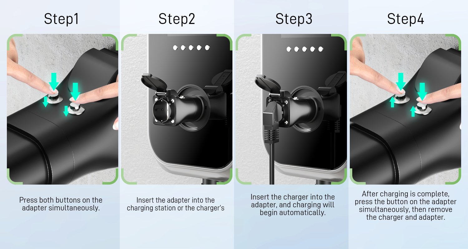 Mit diesem Ladeadapter können Sie Ihre Geräte bequem an öffentlichen Ladestationen oder mit mobilen EV-Ladegeräten aufladen.