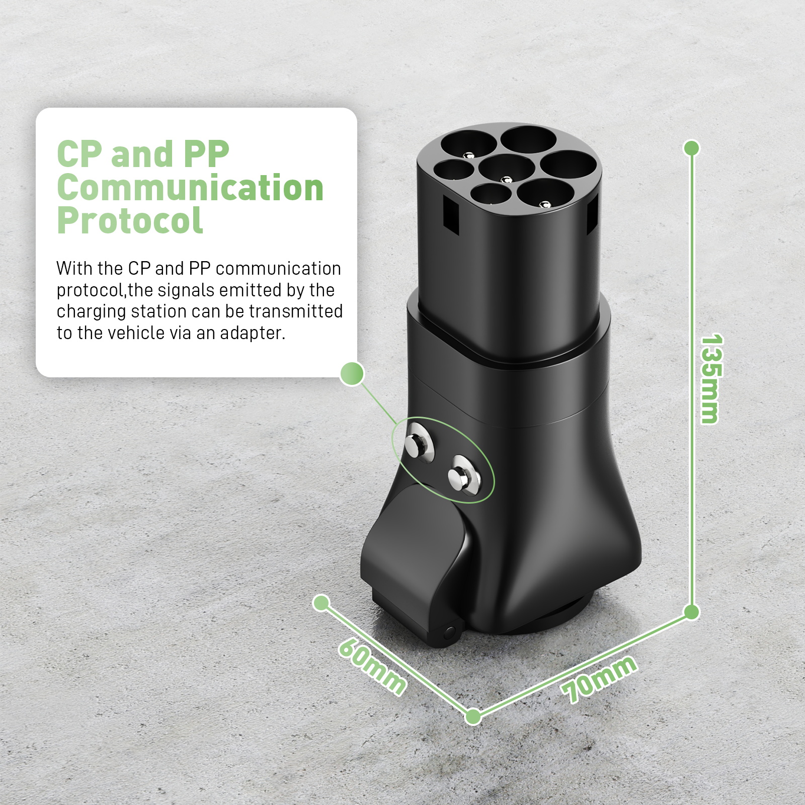 Der Adapter ist mit den CP- (Control Pilot) und PP- (Proximity Pilot) Protokollen ausgestattet und überträgt zuverlässig alle notwendigen Signale der Ladestation an Ihr Fahrzeug.